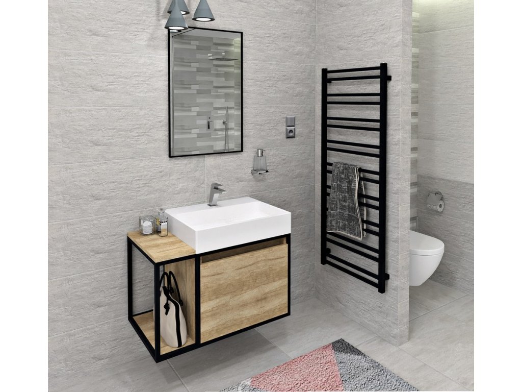 Konstrukce ze série SKARA jsou vhodné do koupelen zařizovaných v moderním i industriálním stylu. Skvěle je doplní vysoká skříňka SKARA ve stejném dekoru nebo skříňky a zrcadla TREOS s rámem v dřevěném dekoru. Perfektní je i kombinace s podsvíceným zrcadlem SORT v černém hliníkovém rámu.