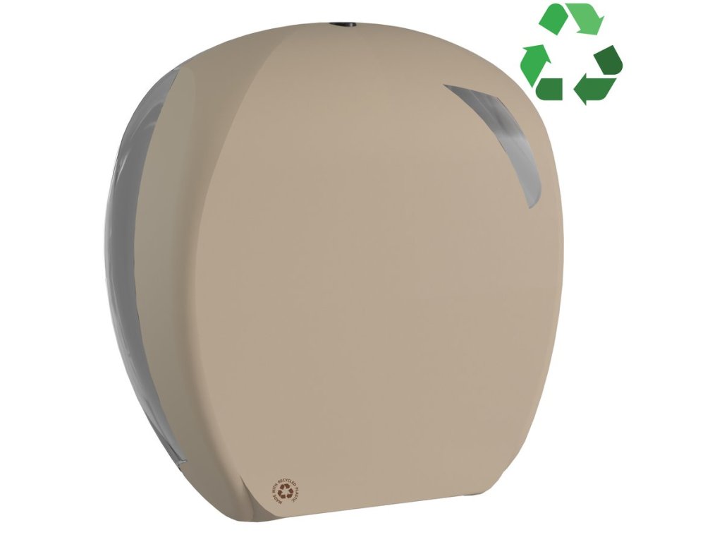 Kolekce SKIN pro veřejné prostory zahrnuje kompletní výběr koupelnových doplňků, které se vyznačují moderním designem. Doplňky v barevném provedení černá a písková jsou vyrobeny z recyklovaného plastu.