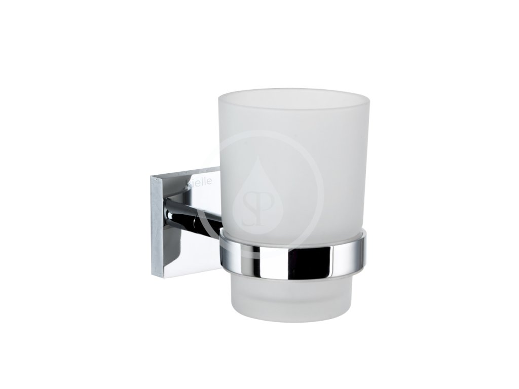 Sklenka na kartáčky a pastu s držákem, matné sklo/chrom