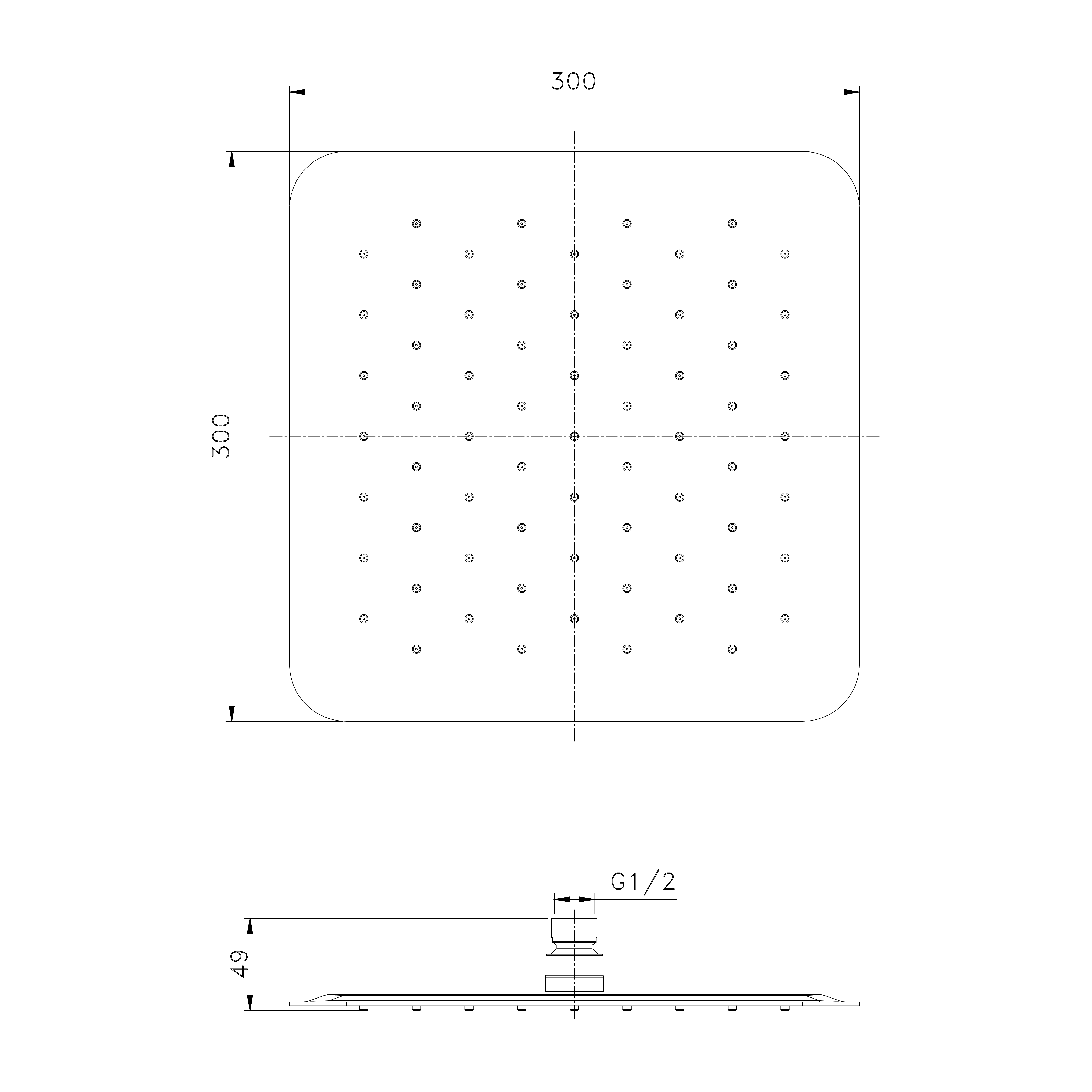 SLIM hlavová sprcha, 300x300mm, zlato mat