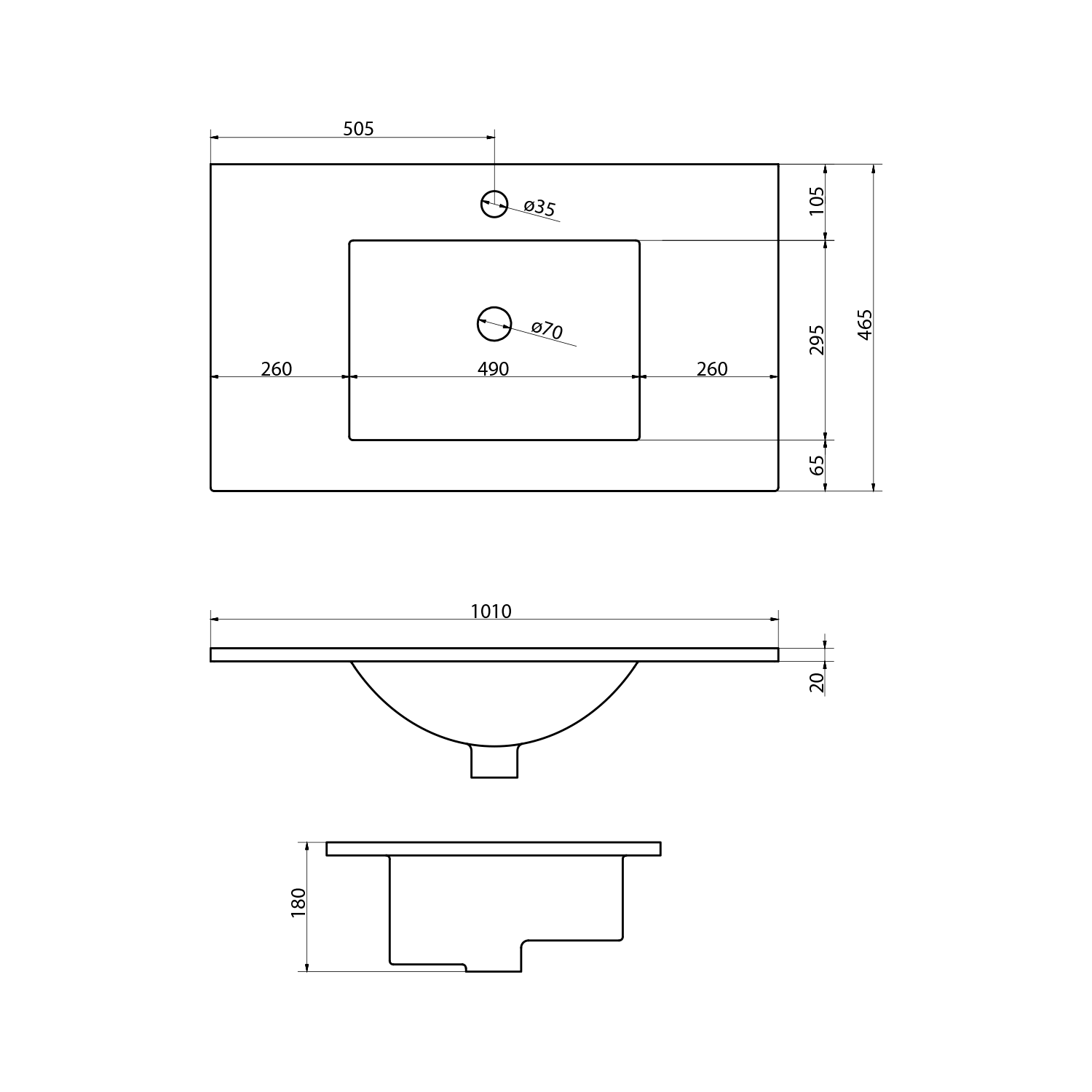 SLIM keramické umyvadlo, nábytkové, 100x46,5cm, bílá