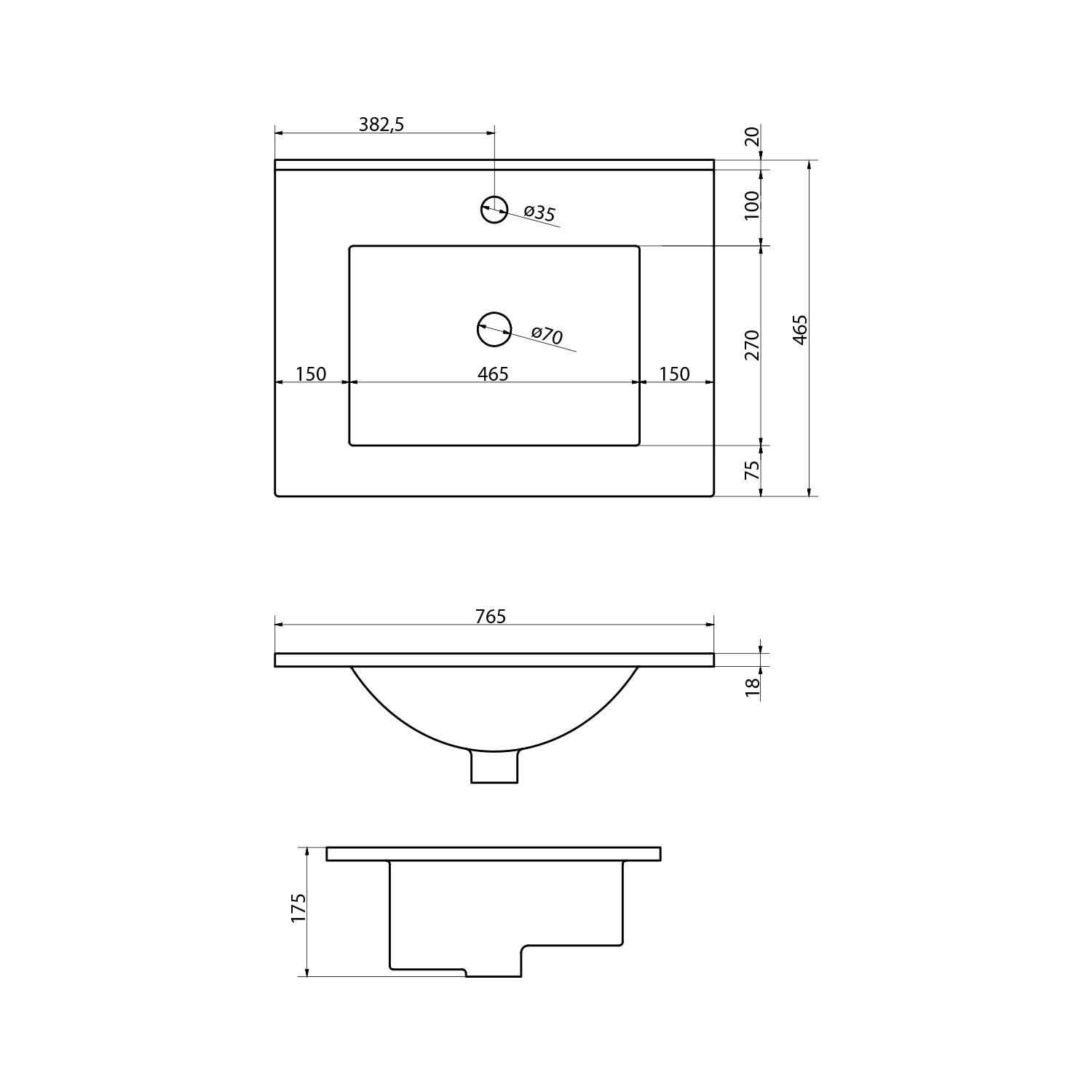 SLIM keramické umyvadlo, nábytkové, 76x46,5cm, bílá