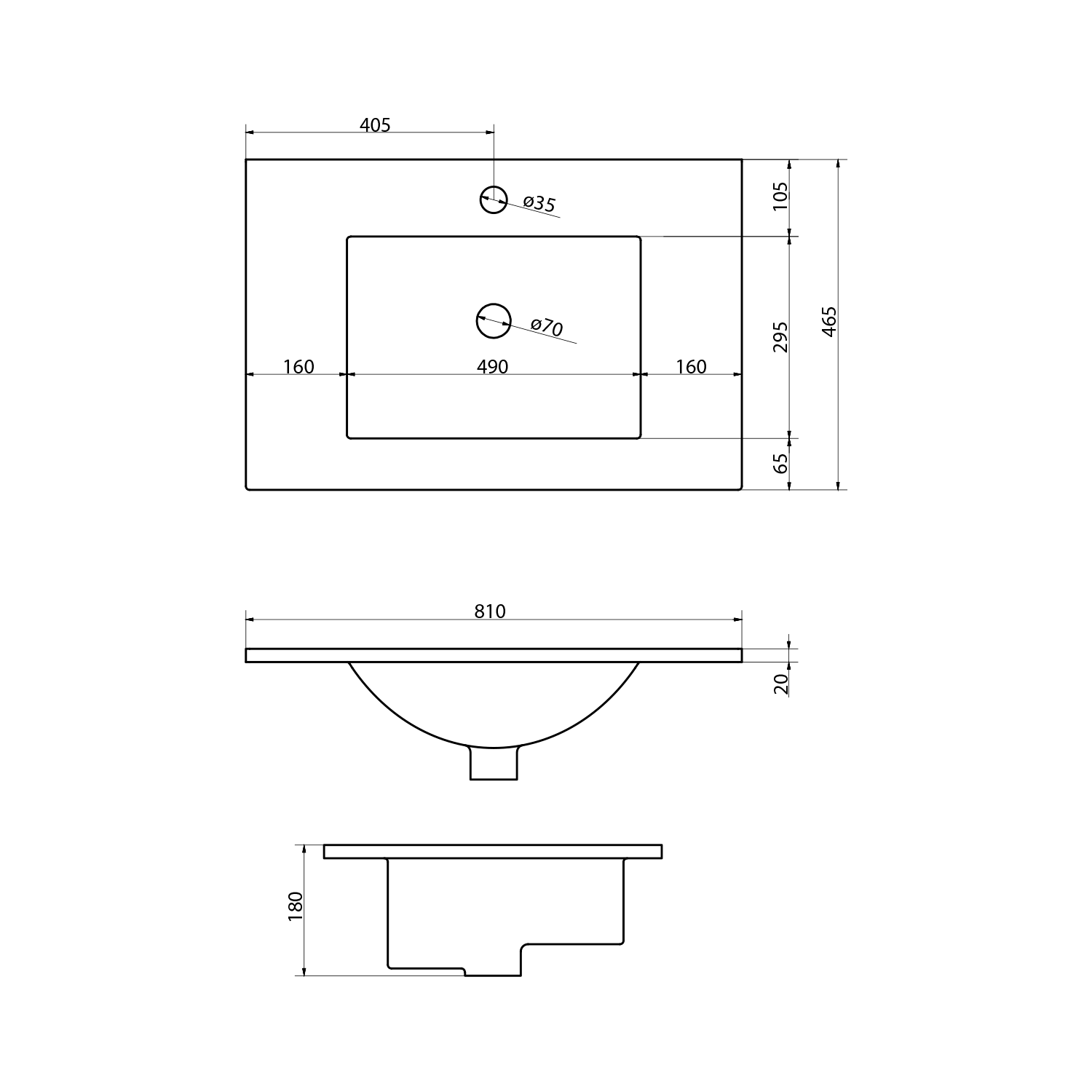 SLIM keramické umyvadlo, nábytkové, 80x46,5cm, bílá