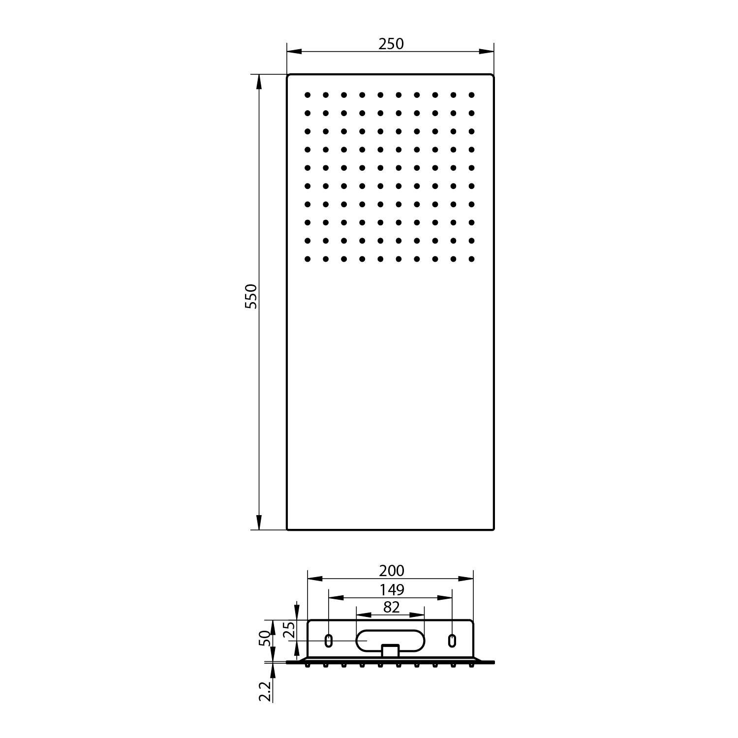 SLIM nástěnná hlavová sprcha, 250x550mm, nerez lesk