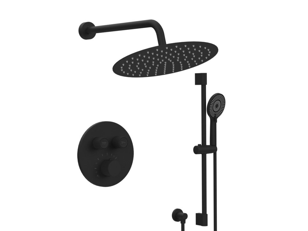 SMART SELECT podomítkový sprchový set s termostatickou baterií, 2 výstupy, posuvný držák sprchy, černá mat