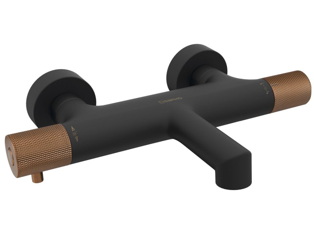 SOLARIS nástěnná vanová termostatická baterie, černá/měď mat