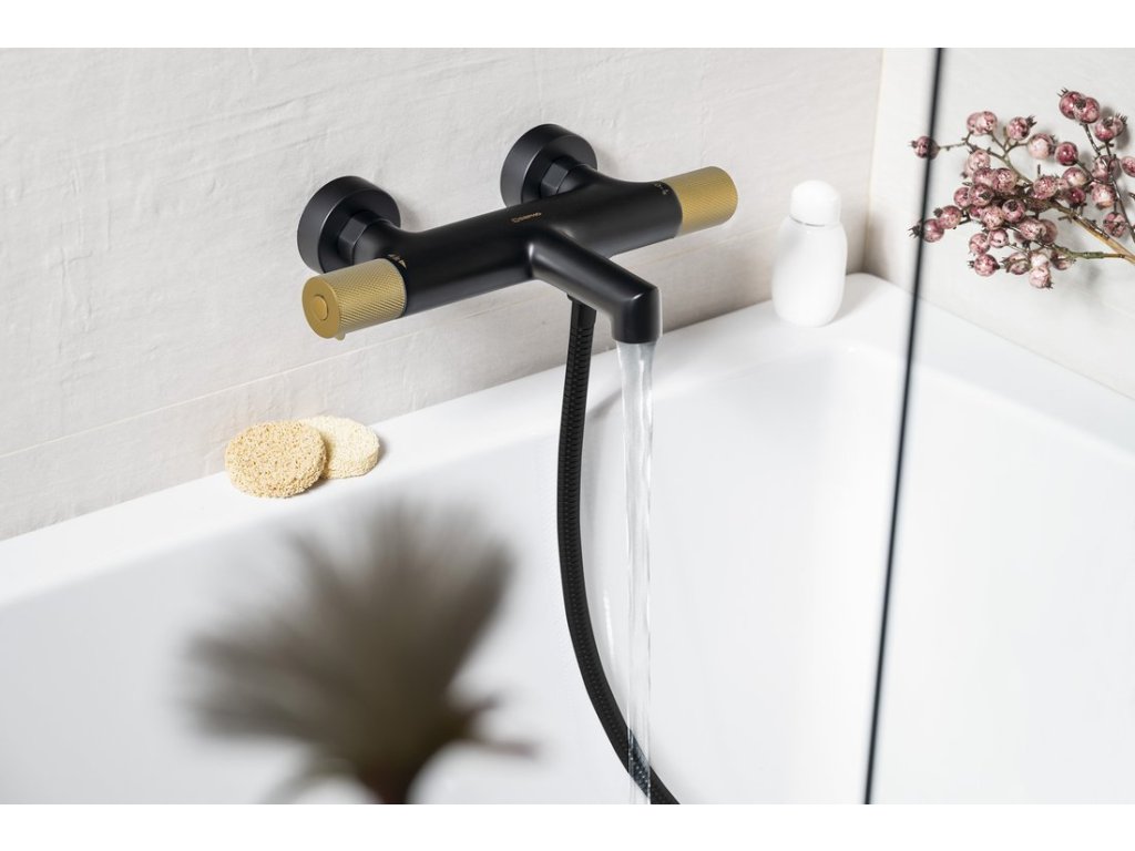 SOLARIS nástěnná vanová termostatická baterie, černá/zlato mat
