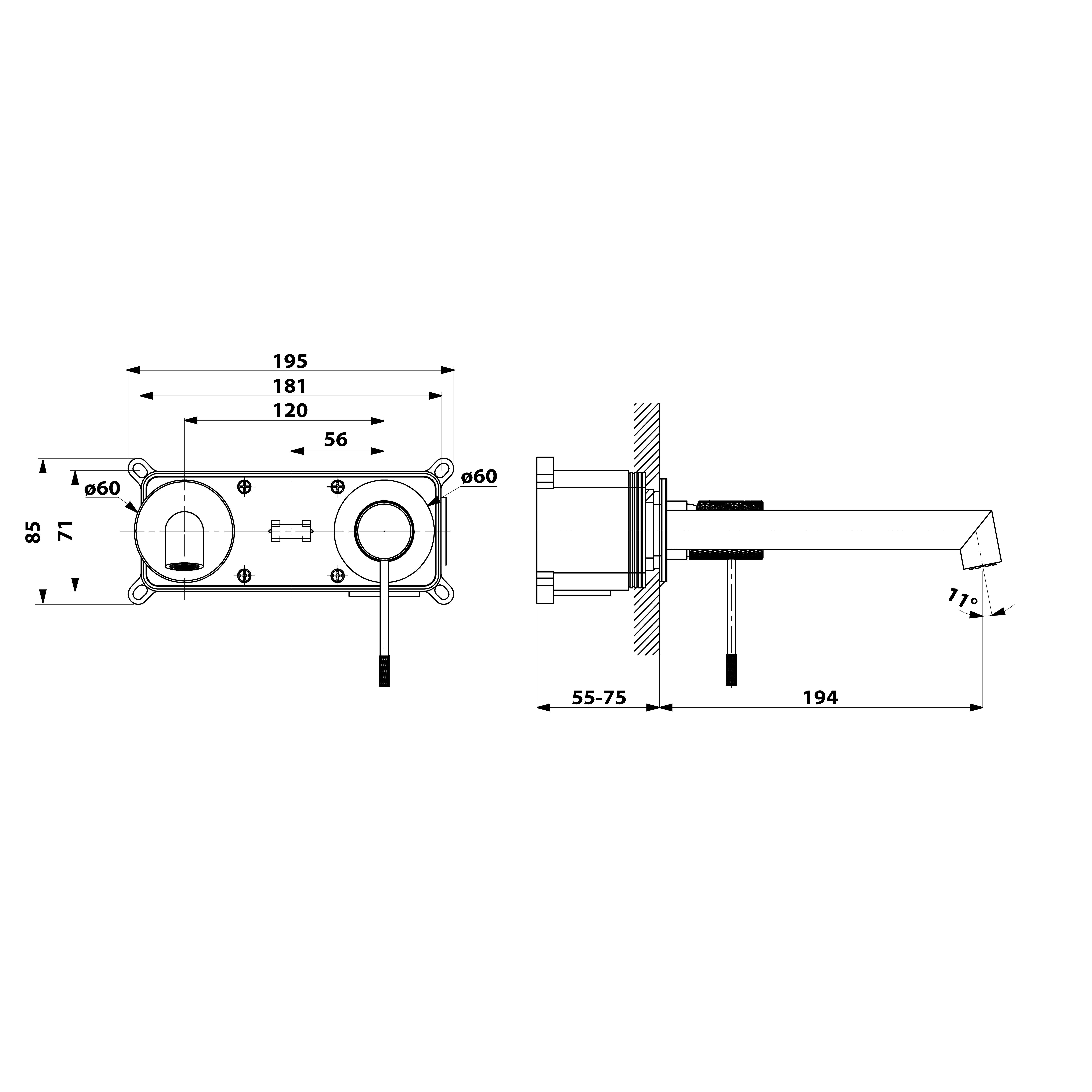 SOLARIS podomítková dvouprvková umyvadlová baterie, černá mat/chrom