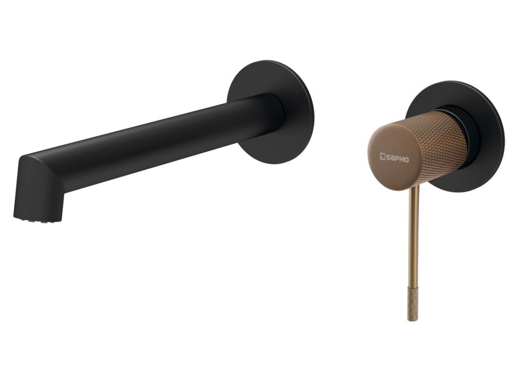 SOLARIS podomítková dvouprvková umyvadlová baterie, černá/měď mat