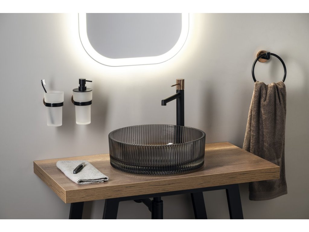 SOLARIS stojánková umyvadlová baterie vysoká, černá/měď mat