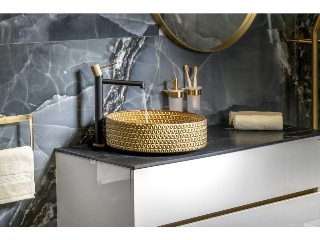 SOLARIS stojánková umyvadlová baterie vysoká, černá/zlato mat