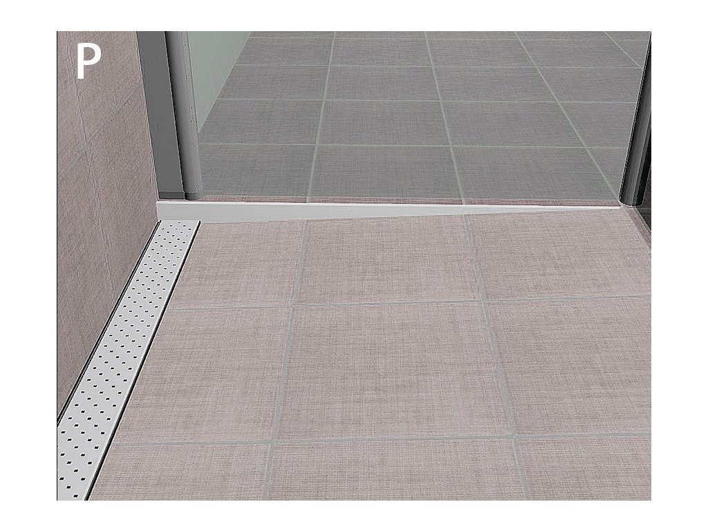 - Spádovací lišta pomáhá zakrýt přechod vzniklý během výstavby sprchového koutu mezi spádovanou a nespádovanou částí podlahy.