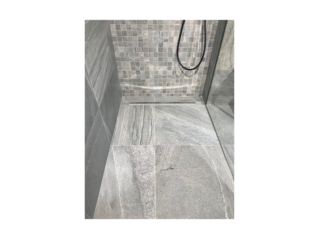 - Spádovací lišta pomáhá zakrýt přechod vzniklý během výstavby sprchového koutu mezi spádovanou a nespádovanou částí podlahy.