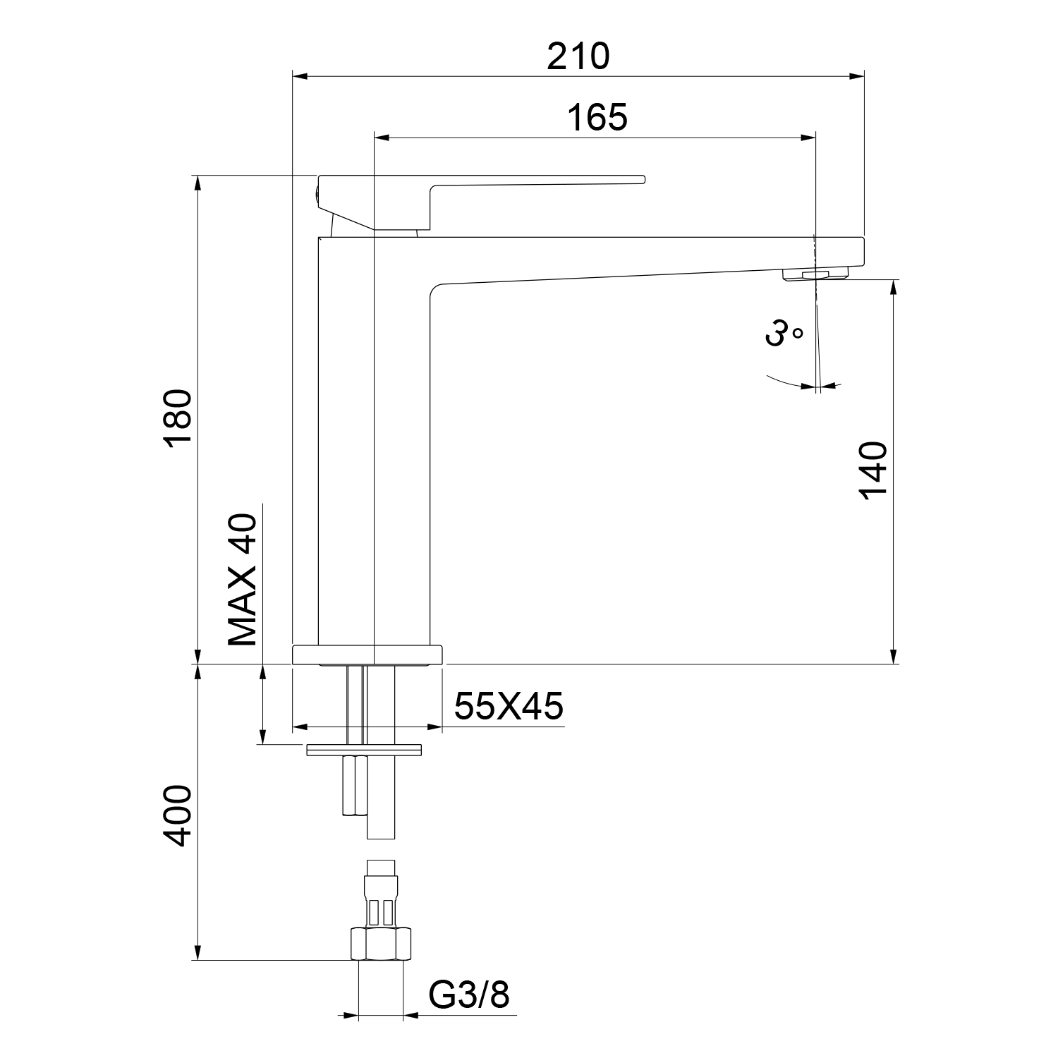 SPECTRE stojánková umyvadlová baterie, výška 180mm, černá mat