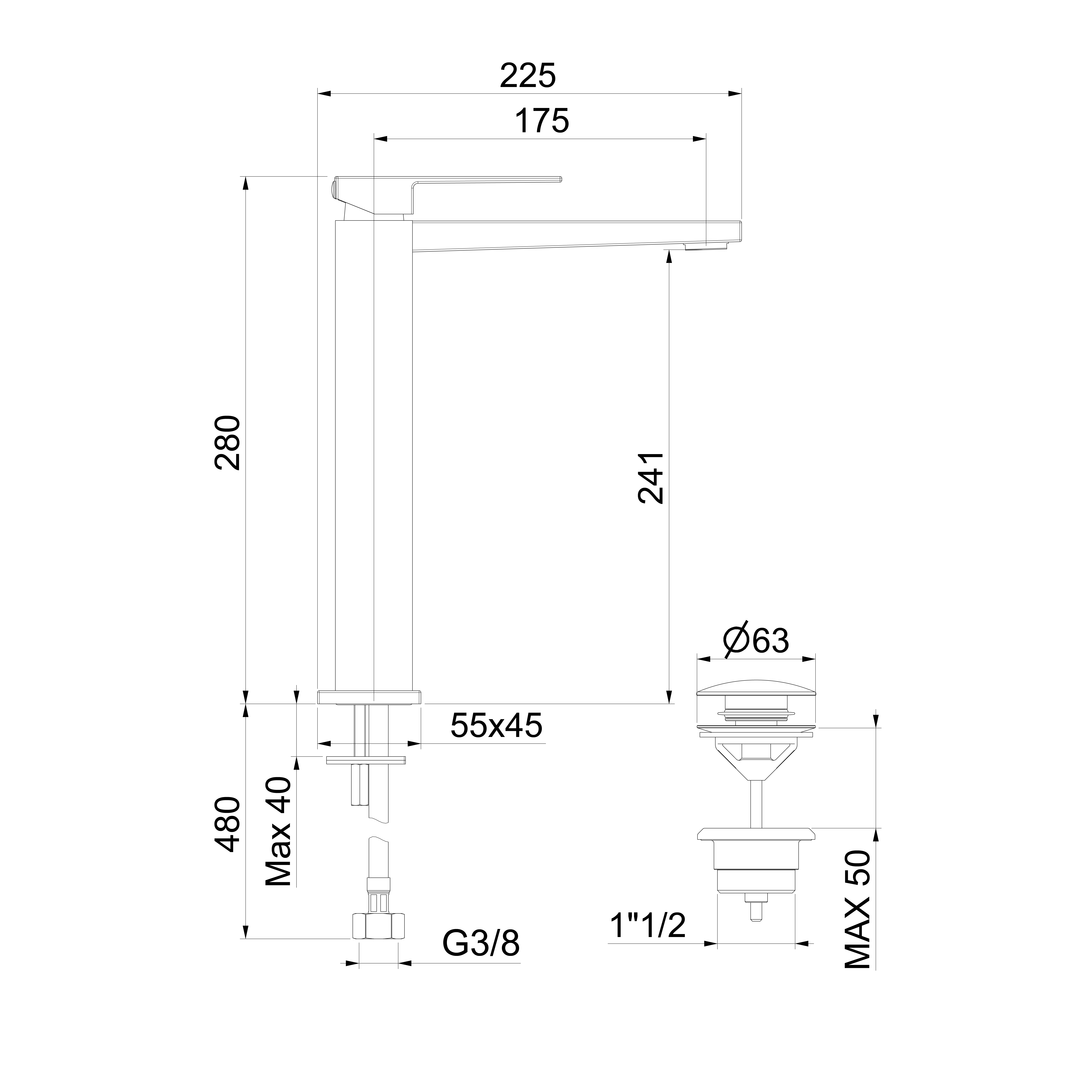 SPECTRE stojánková umyvadlová baterie vysoká, chrom