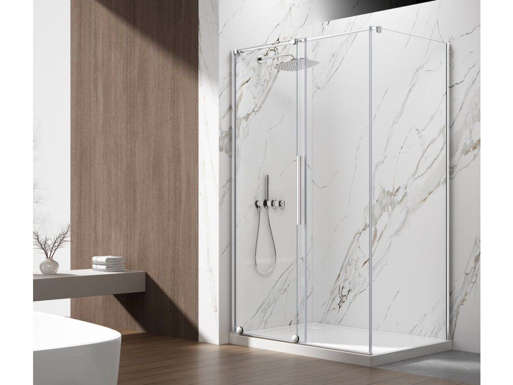 - Stylem walk-in lze dveře instalovat s kolmou vzpěrou 1200 mm, která je součástí balení nebo s rohovou vzpěrou (k dokoupení)