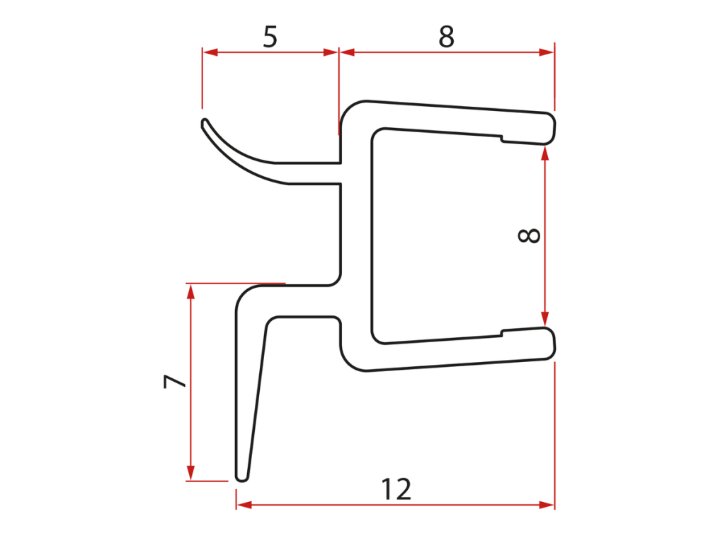 Spodní těsnění na dveře, sklo 8mm, 1000mm