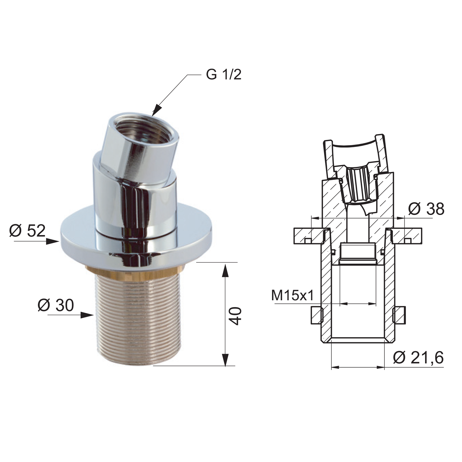Sprchová průchodka na okraj vany s mezikusem F1/2"-M15x1, chrom