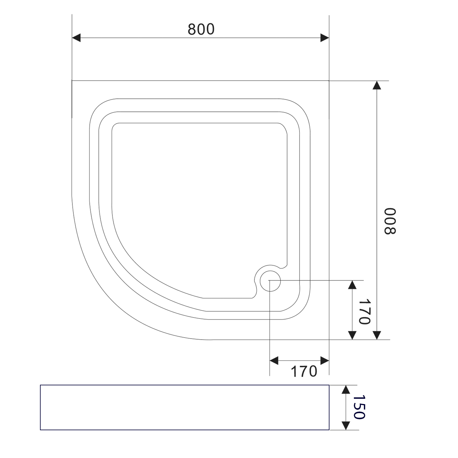 Sprchová samonosná vanička akrylátová, čtvrtkruh 80x80x15cm