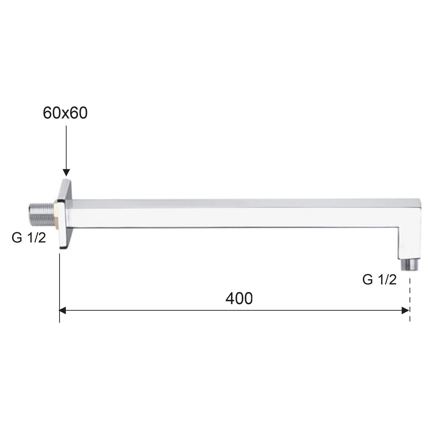 Sprchové ramínko hranaté, 400mm, zlato