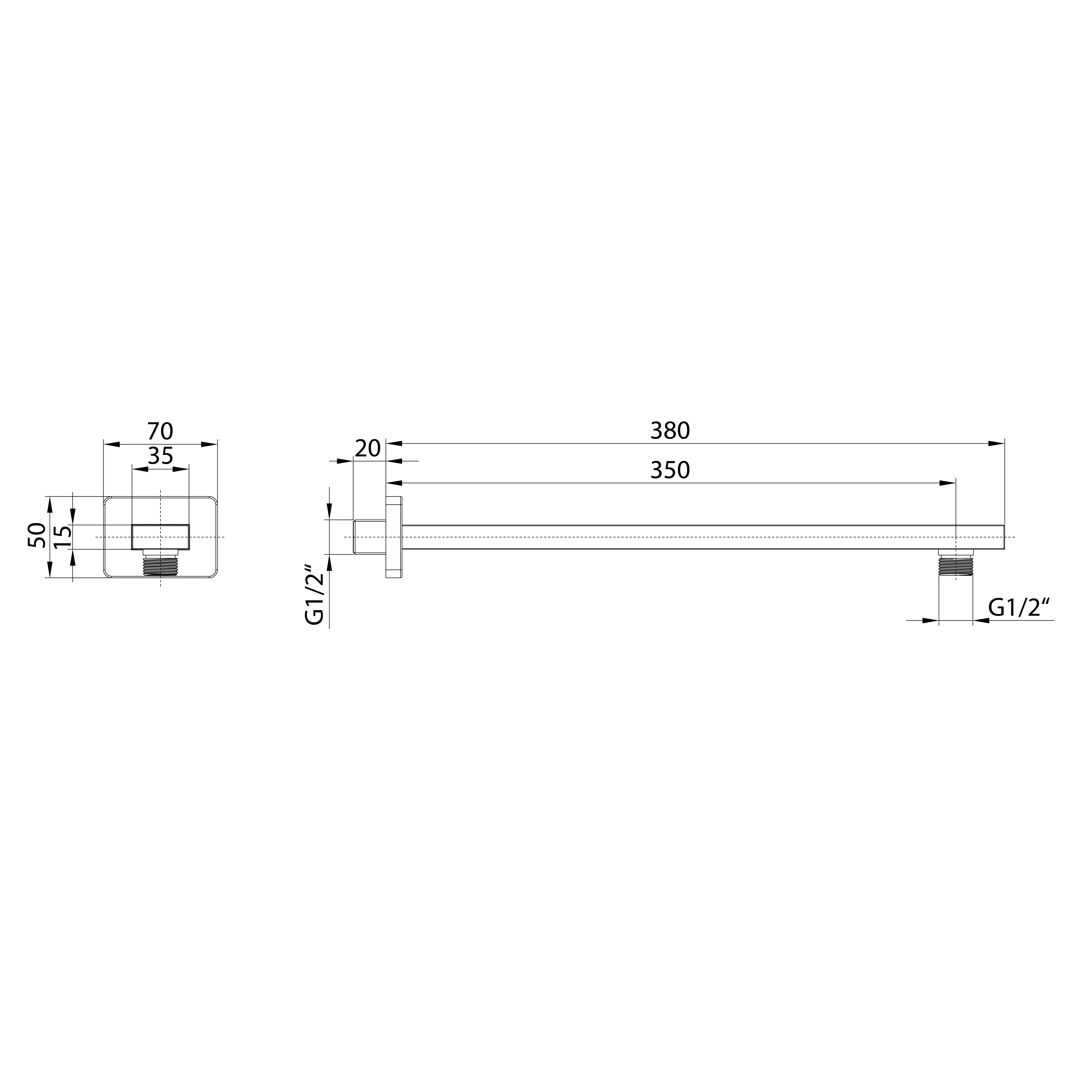 Sprchové ramínko hranaté nízké, 380mm, zlato mat