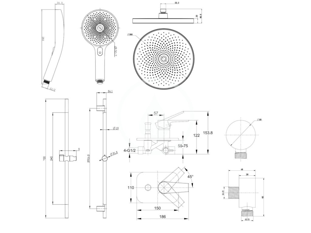 - průměr sprchy 260 mm