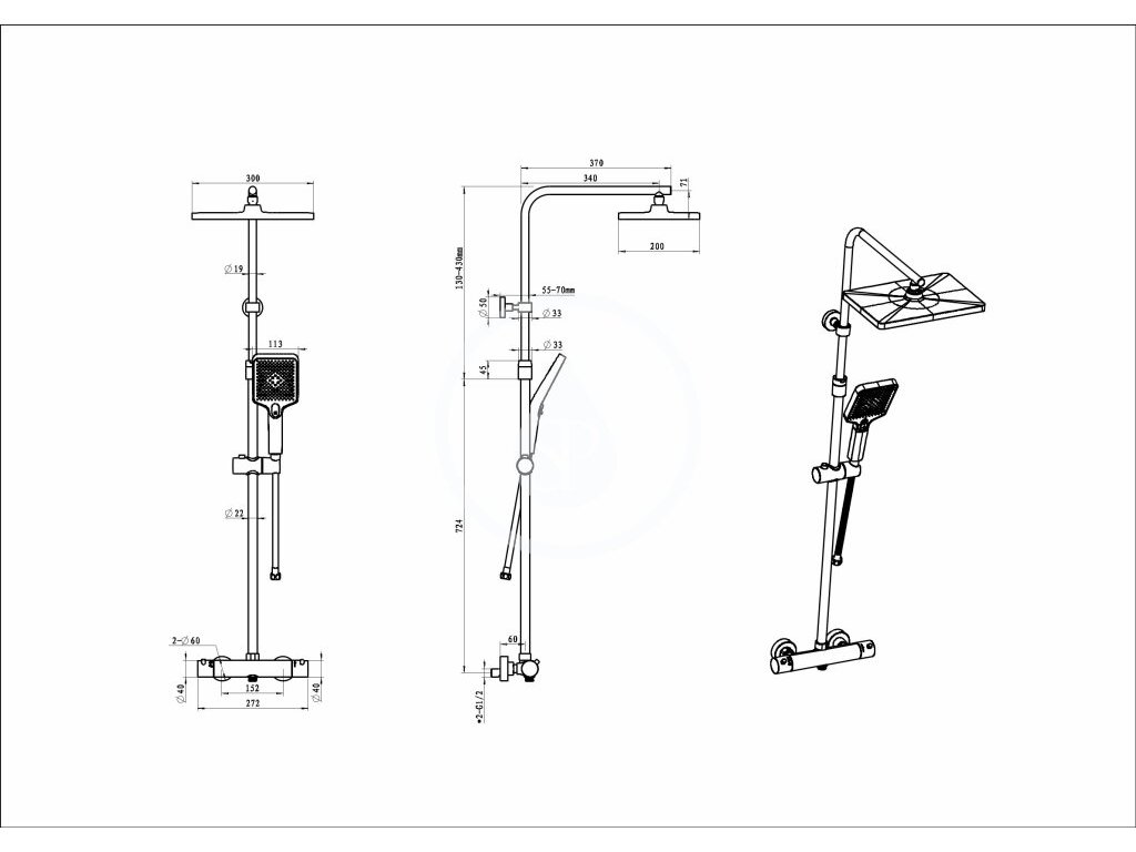 Sprchový set s termostatem, 300 x 200 mm, 3 proudy, chrom