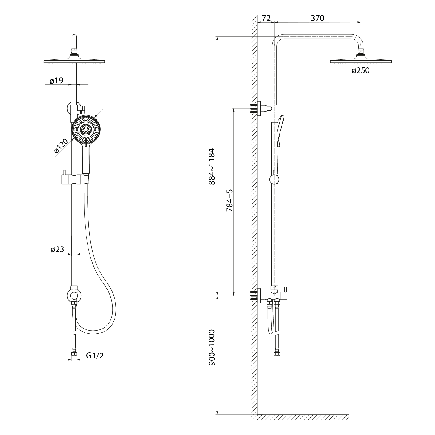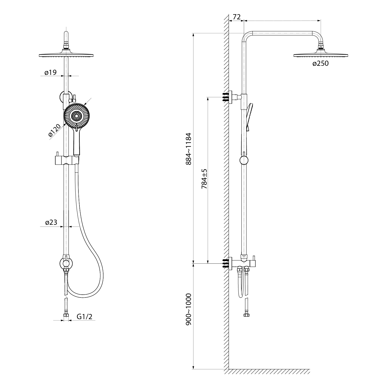Sprchový sloup k napojení na baterii, hlavová, ruční sprcha, chrom