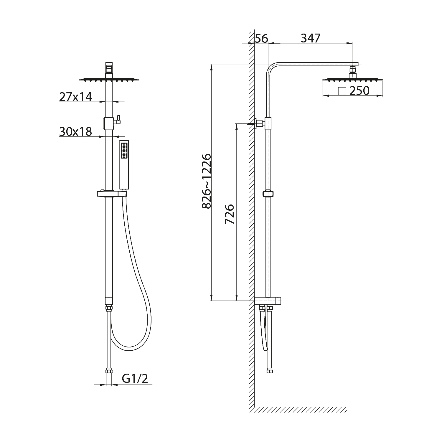 Sprchový sloup k napojení na baterii, hlavová, ruční sprcha, chrom