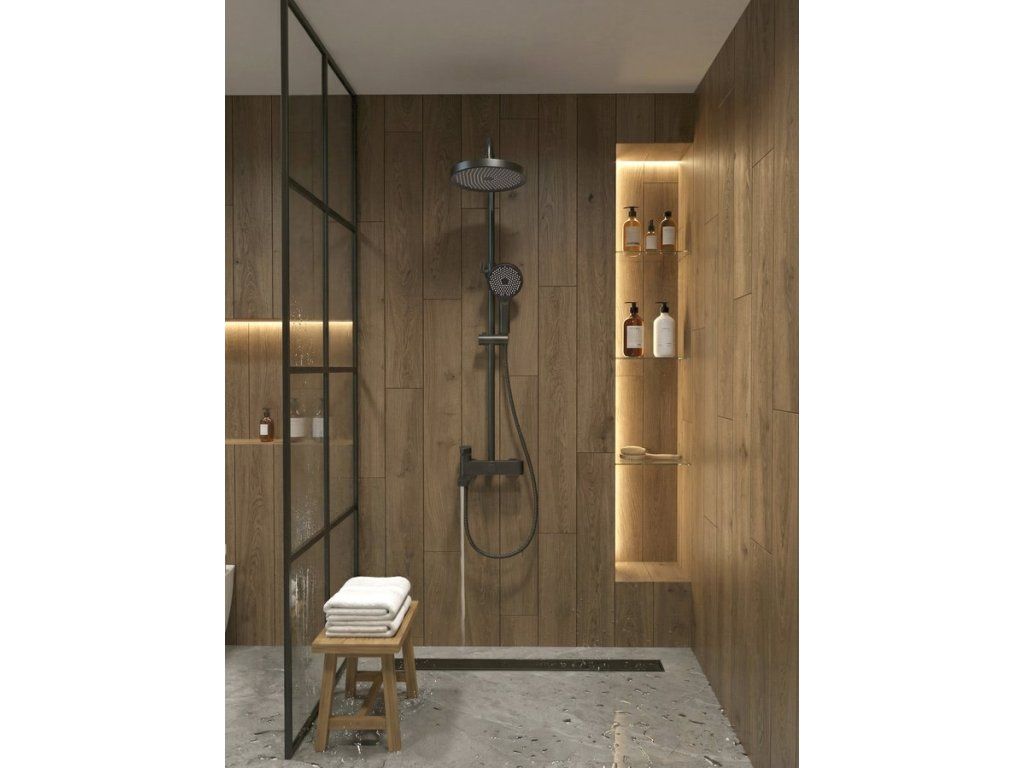 Sprchový sloup s pákovou baterií, otočné ramínko, černá mat