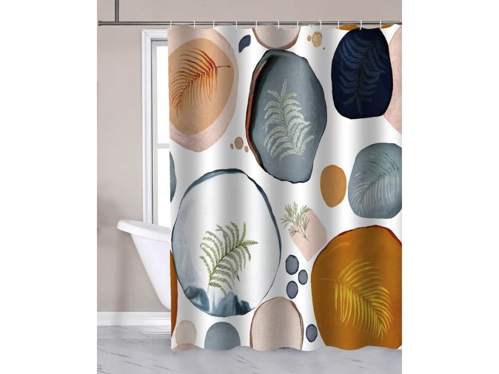 Sprchový závěs 180x180cm, polyester, bubliny/kapradí
