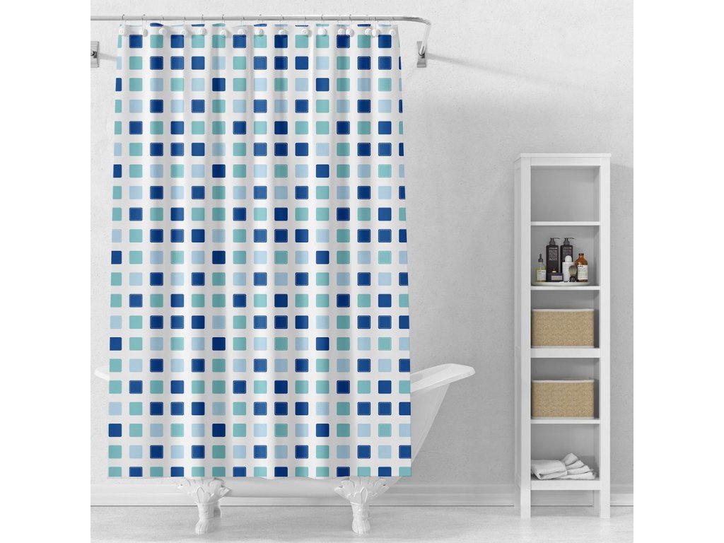 Sprchový závěs 180x180cm, vinyl, bílá, modré kostky