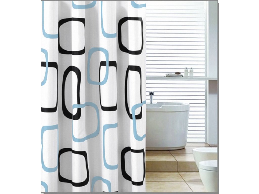 Sprchový závěs 180x200cm, polyester, bílá/černá/modrá