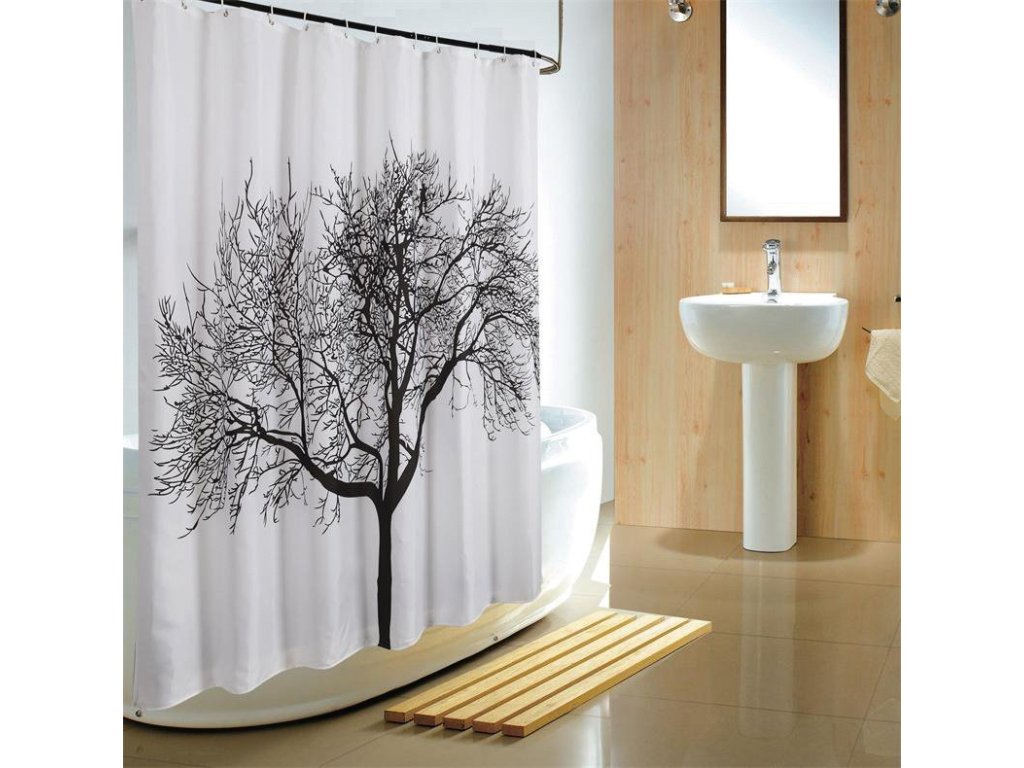 Sprchový závěs 180x200cm, polyester, černá/bílá, strom