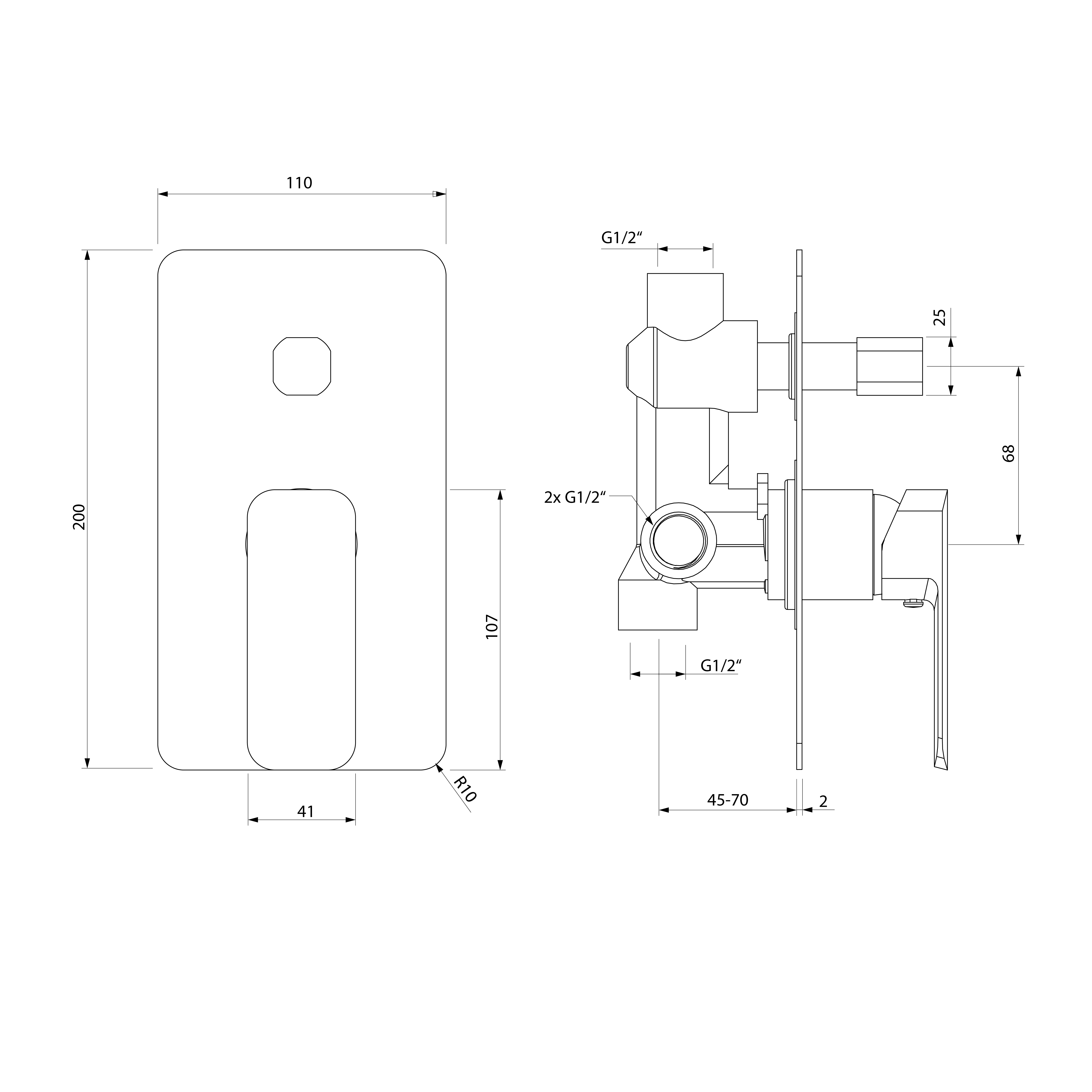 SPY podomítková sprchová baterie, 2 výstupy, otočný přepínač, chrom