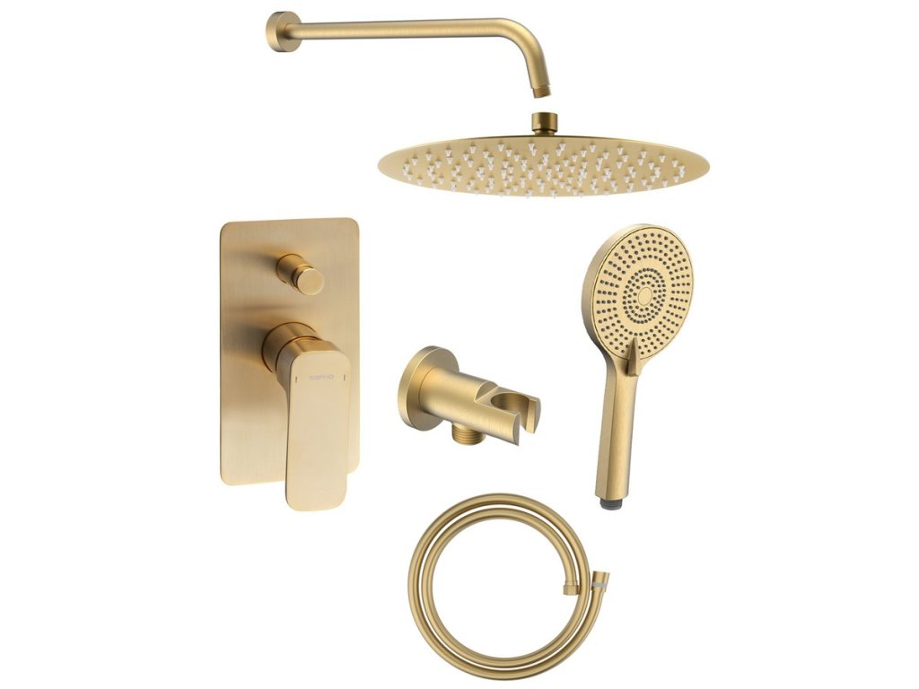 SPY podomítkový sprchový set s pákovou baterií, otočný přepínač, 2 výstupy, zlato mat