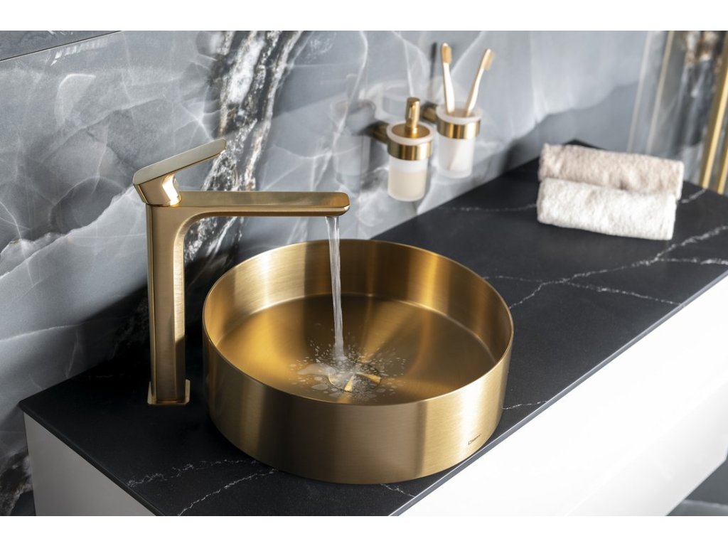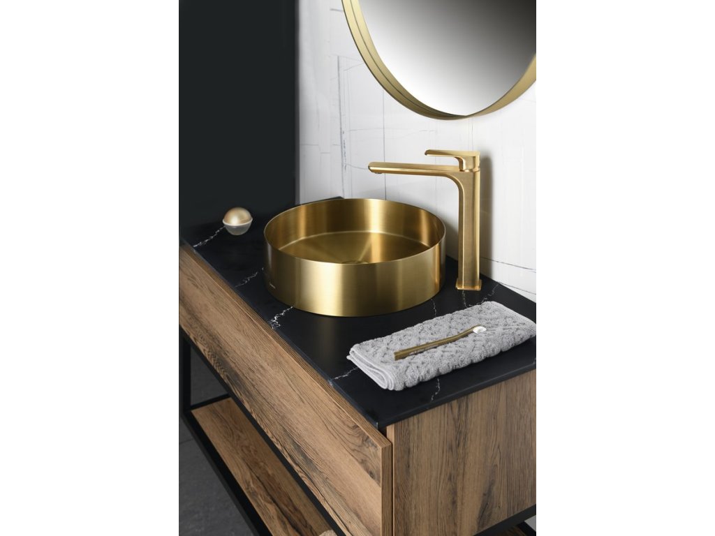 SPY stojánková umyvadlová baterie vysoká, prodloužená hubice, zlato mat