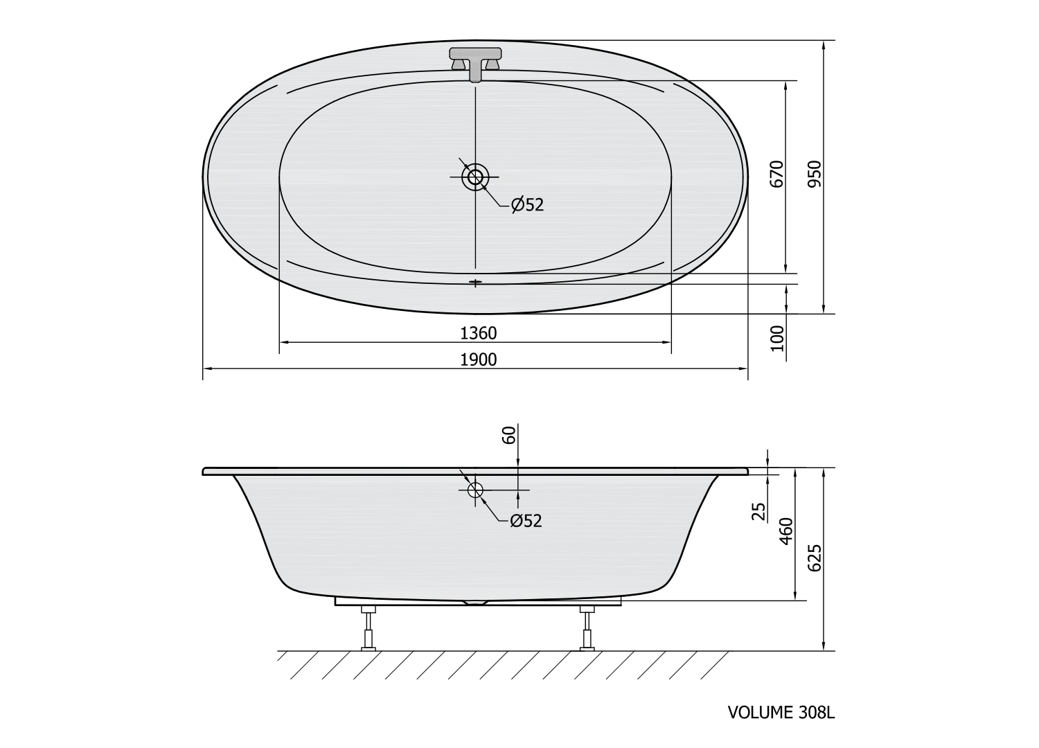 Oválná vana STADIUM s tvarem dokonalé elipsy poskytuje dostatek prostoru jak pro koupel ve dvou tak i pro skotačení dětí. Díky svému tvaru nejsou nikde ostré linie a vana působí harmonickým dojmem. Dostatečně široký okraj po obou stranách dovoluje použití stojánkové baterie, napouštěcí hubice nebo ovládání hydromasážního systému.