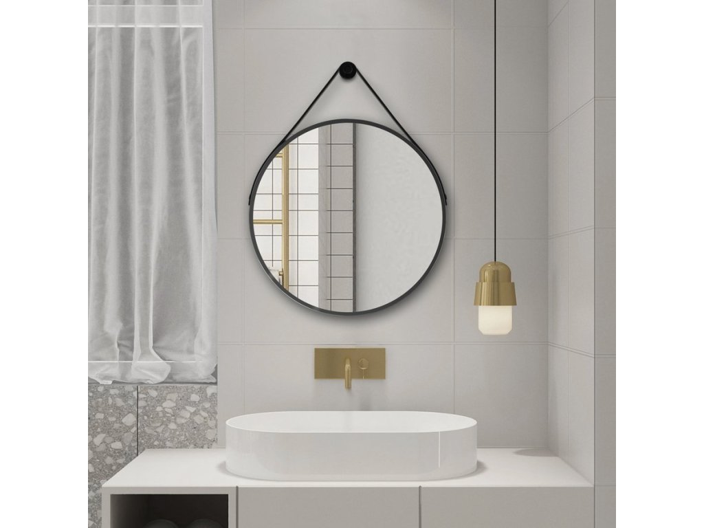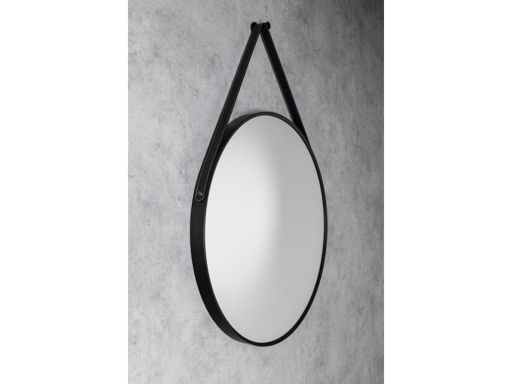 STAGO kulaté zrcadlo ø 60cm, kožený pásek, černá mat
