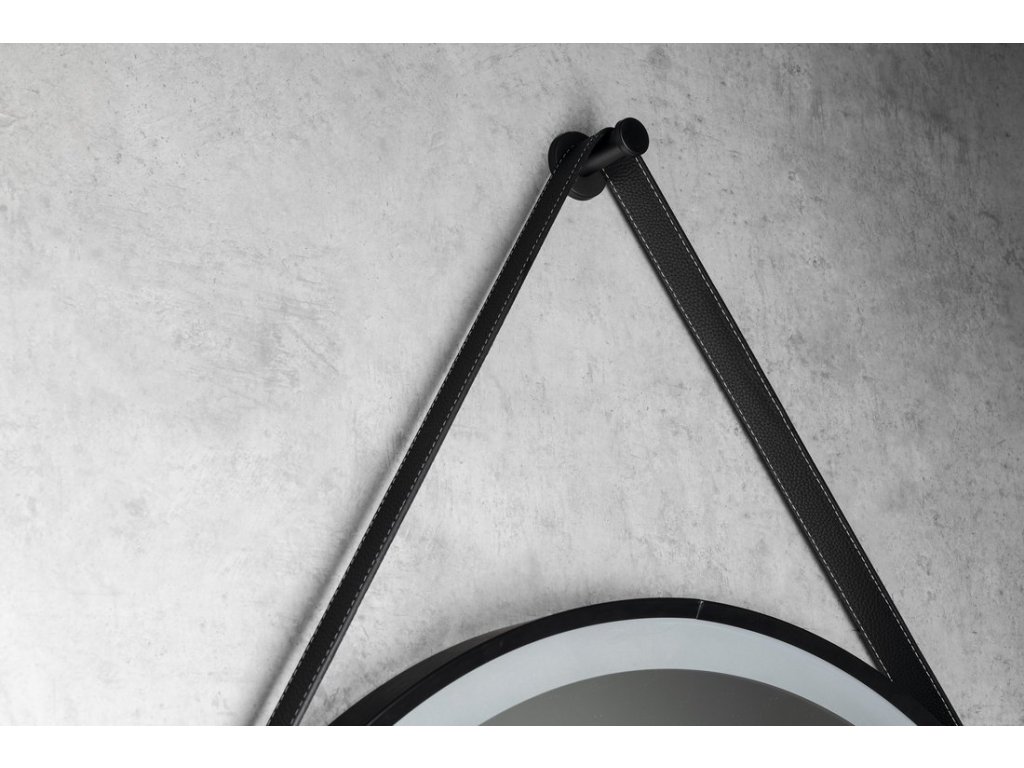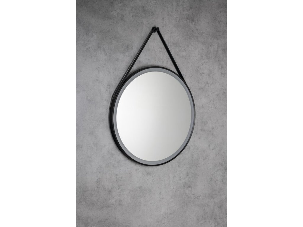STAGO kulaté zrcadlo s LED osvětlením ø 60cm, kožený pásek, dotykový senzor, stmívatelné, černá mat