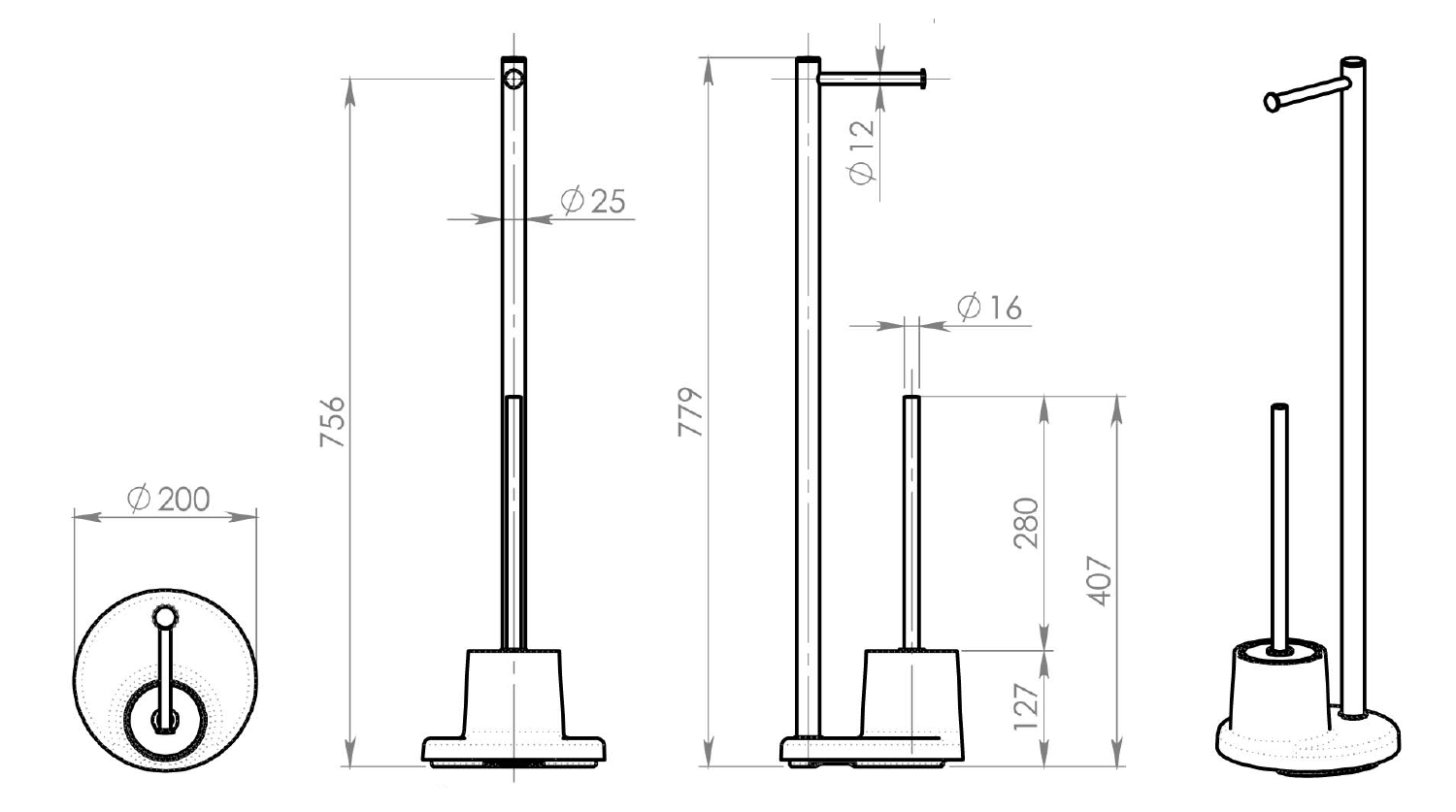 Stojan s držákem na toaletní papír a WC štětkou, bílá