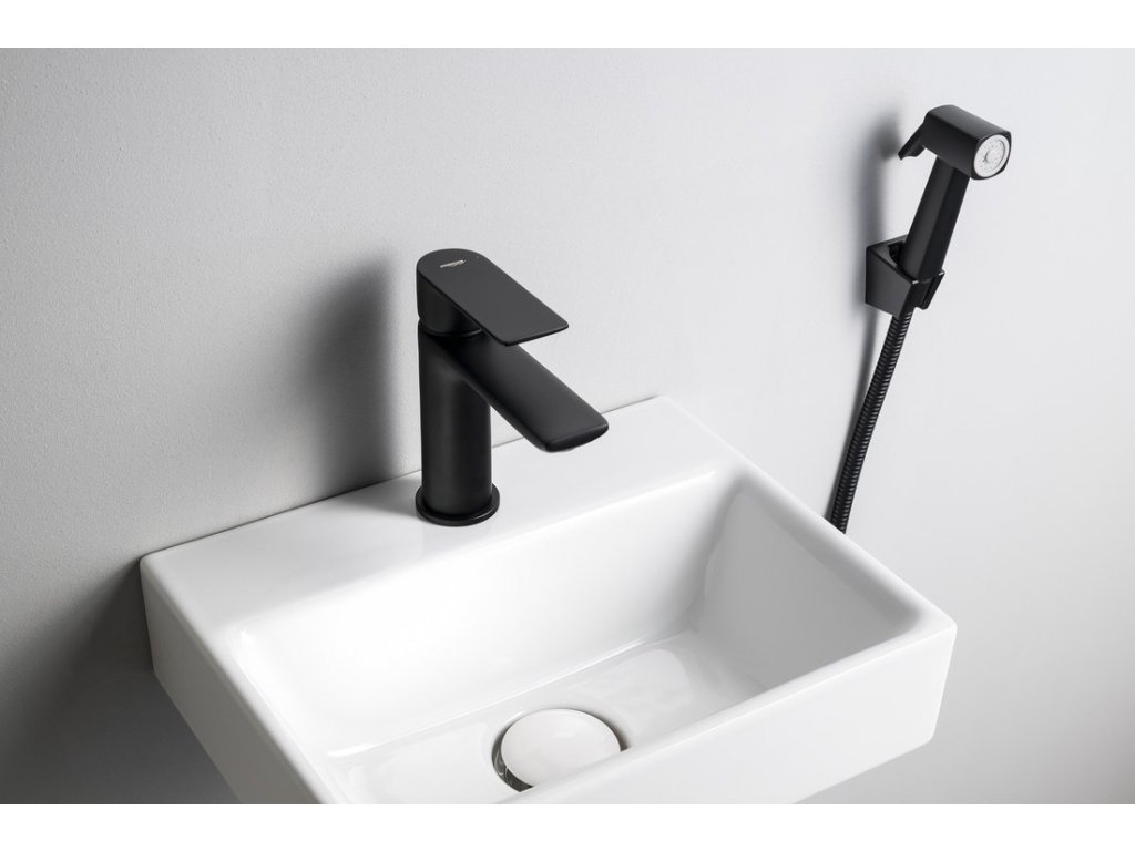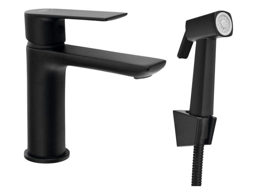 Stojánková umyvadlová baterie s bidetovou sprchou, černá mat