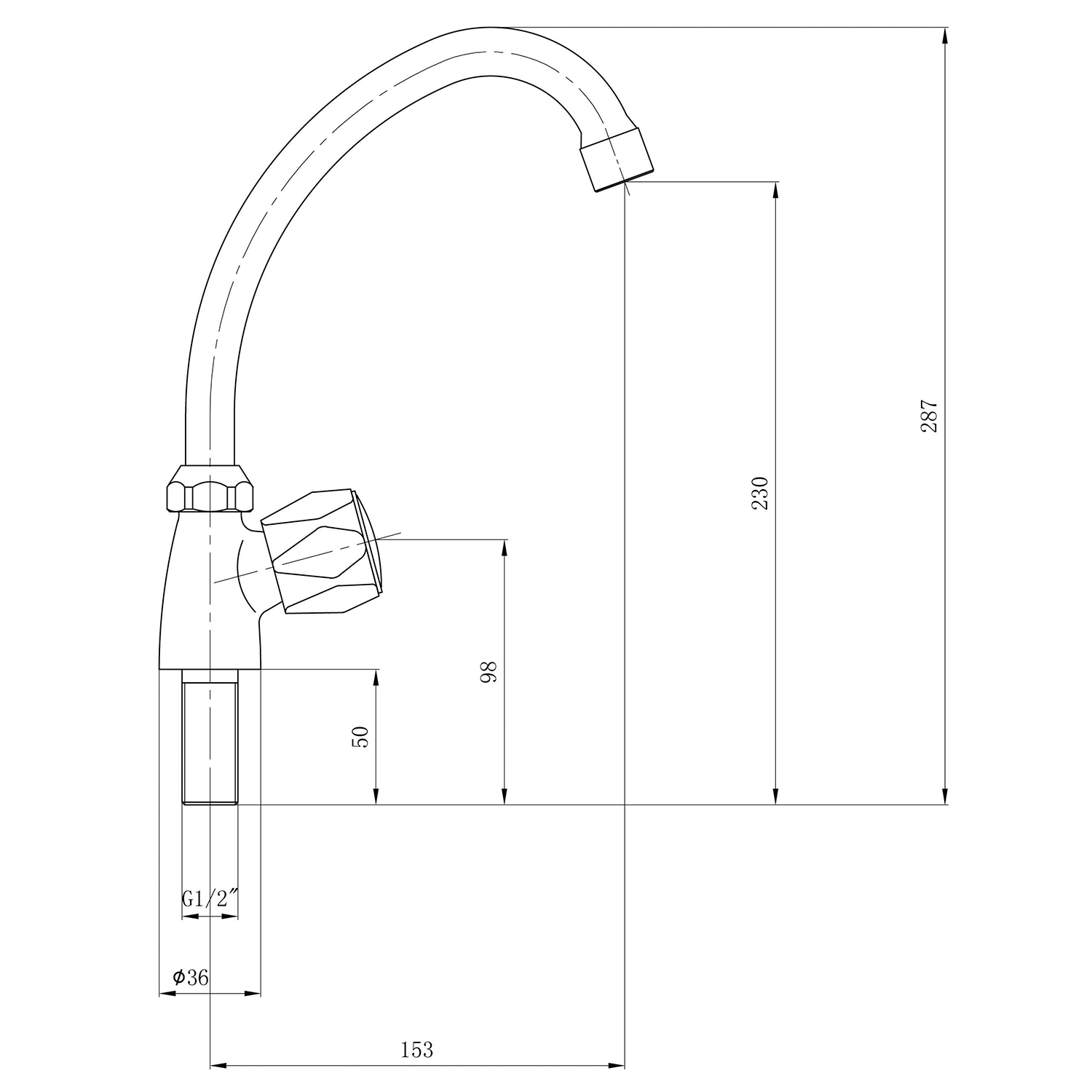 Stojánkový ventil 1/2", otočná hubice, chrom