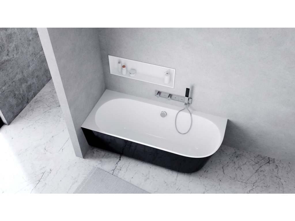 SUSSI L rohová stojící vana, litý mramor 160x70x49,5cm, černá/bílá