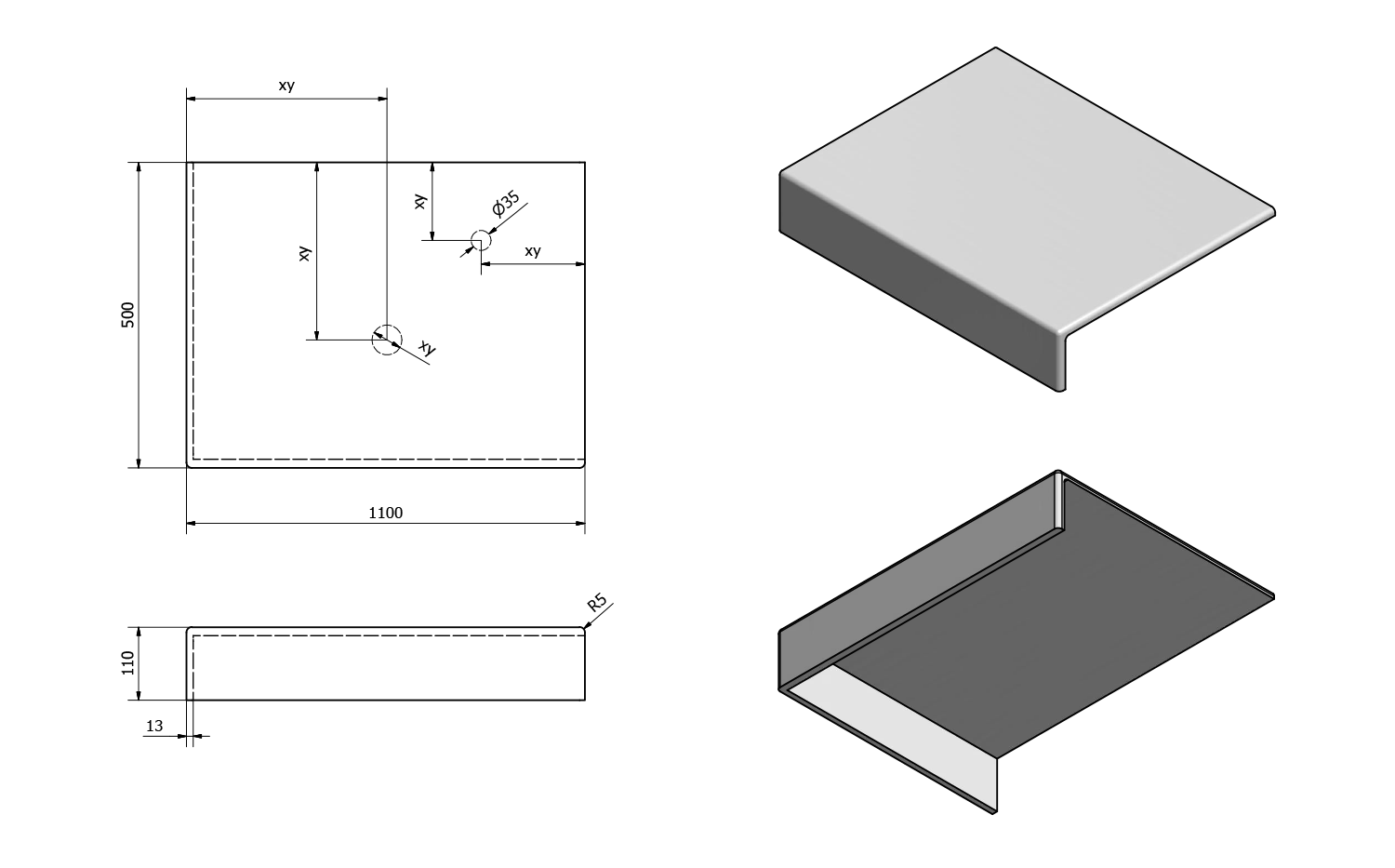 - Možnost dodání s otvory pro baterii a odpad dle výkresu (lze vrtat i v místě instalace)