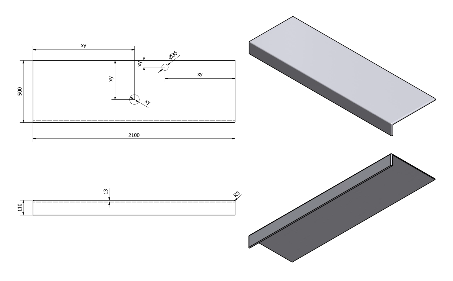 - Možnost dodání s otvory pro baterii a odpad dle výkresu (lze vrtat i v místě instalace)