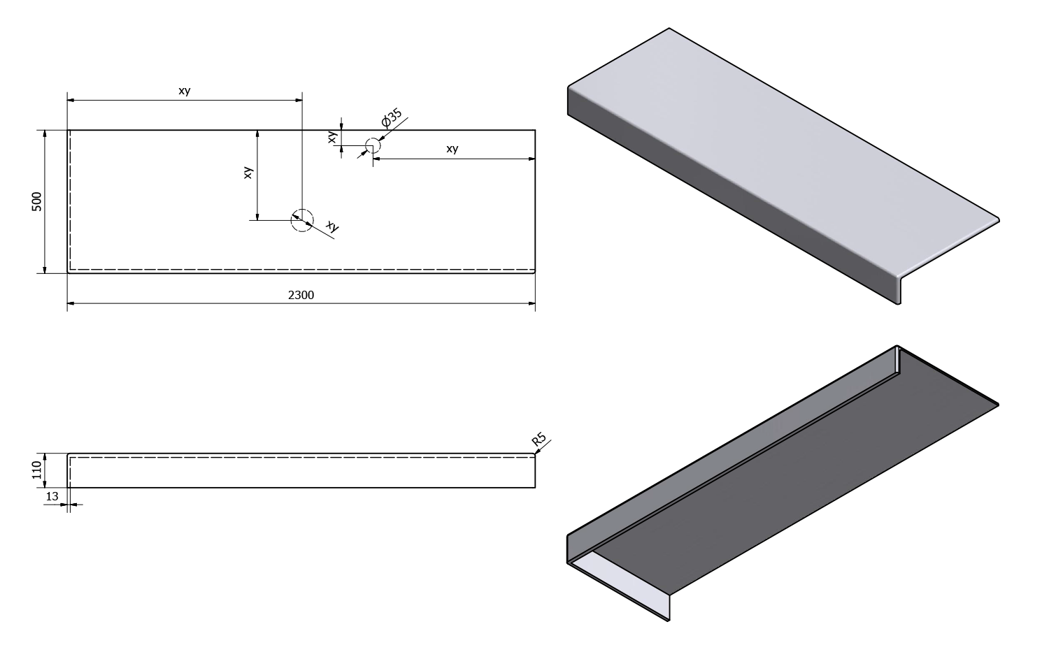 - Možnost dodání s otvory pro baterii a odpad dle výkresu (lze vrtat i v místě instalace)