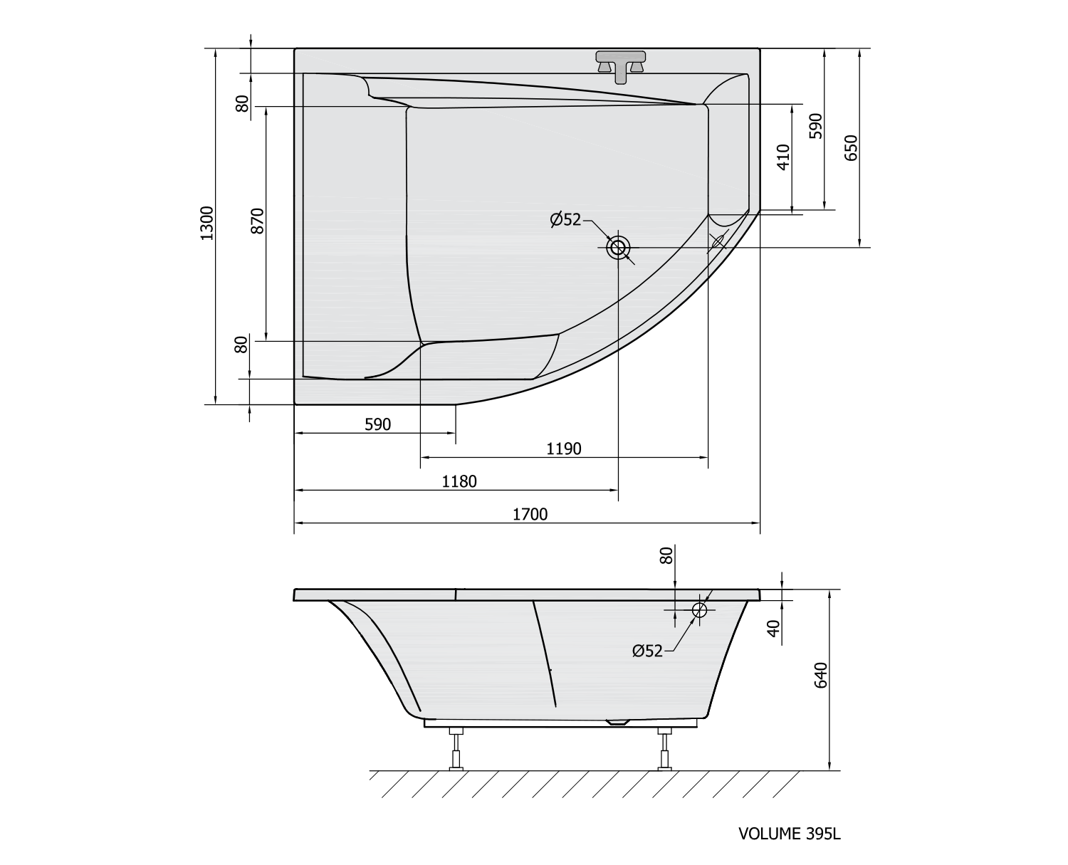 TANDEM L asymetrická vana 170x130x50cm, bílá