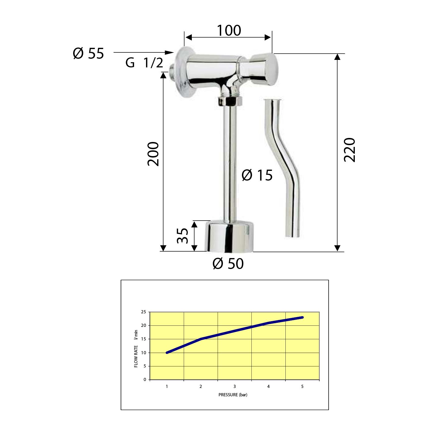 TEMPOR samouzavírací nástěnný ventil pro urinál, chrom