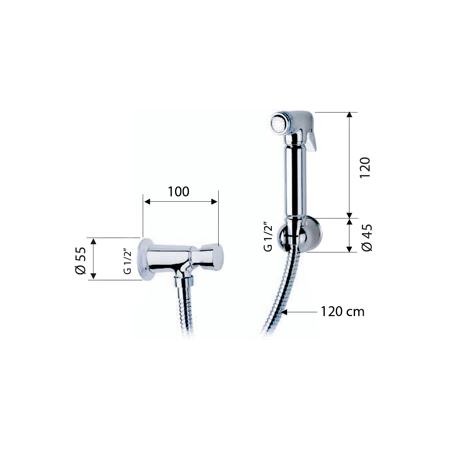 TEMPOR samouzavírací nástěnný ventil s bidetovou sprškou, chrom